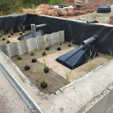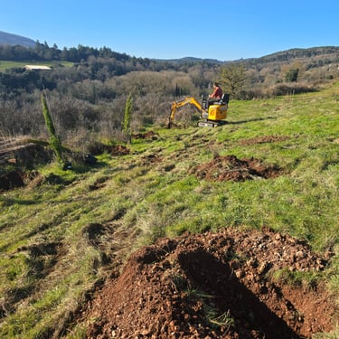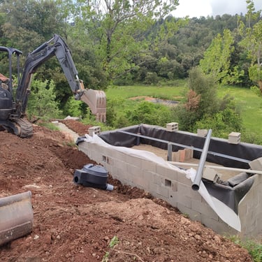 Réhabilitation d'une source, et création de plusieurs bassins avec différents matériaux: