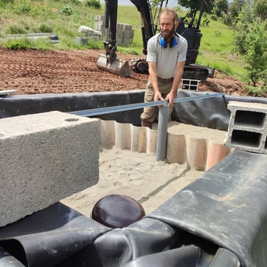 Argile ; Membrane EPDM ; Pierres ; Béton
