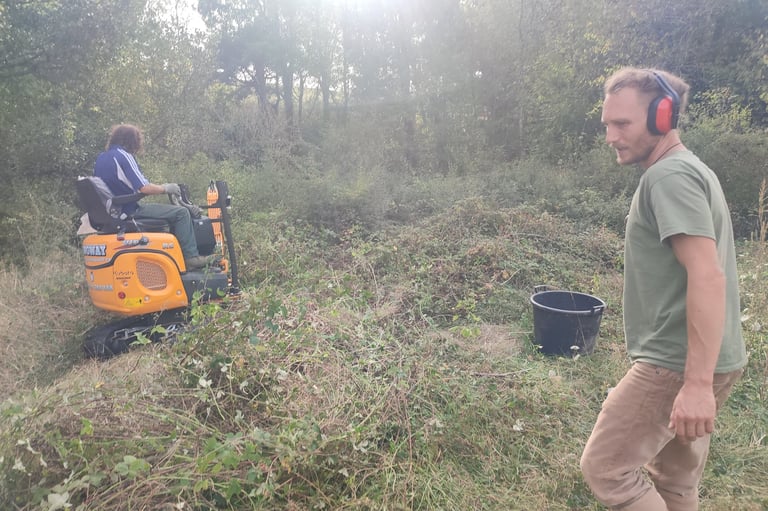Débroussaillage, éclaircissement d'une zone envahie de ronces et prunelliers