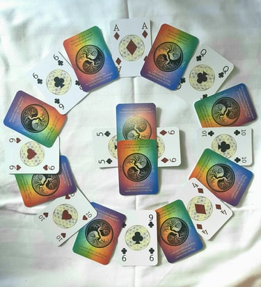 UniCards peut se jouer seul ou à plusieurs. Les questions invitent à l’introspection et à une connexion profonde avec soi-même, révélant des aspects de notre énergie, notre caractère et de la Vie. Il est conseillé de prendre un moment pour s’aligner mentalement, émotionnellement et énergétiquement — idéalement en Nature, loin des influences extérieures. Chaque question peut être posée, puis répondue (ou écrite), en toute honnêteté et unicité.